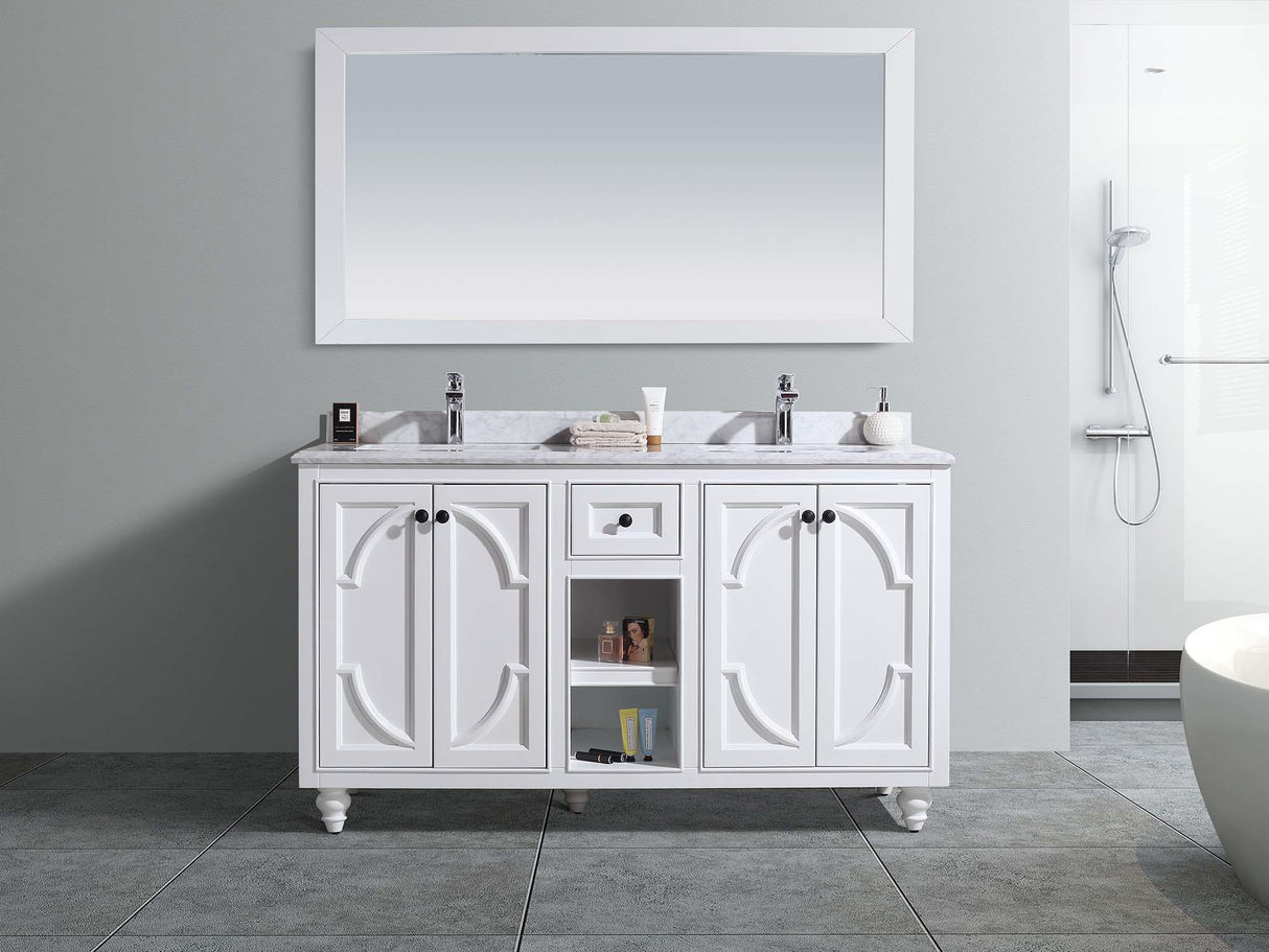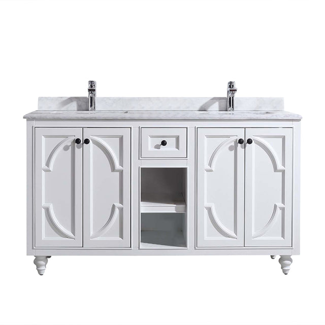 Odyssey 60" White Double Sink Bathroom Vanity with White Carrara Marble Countertop Laviva 313613-60W-WC