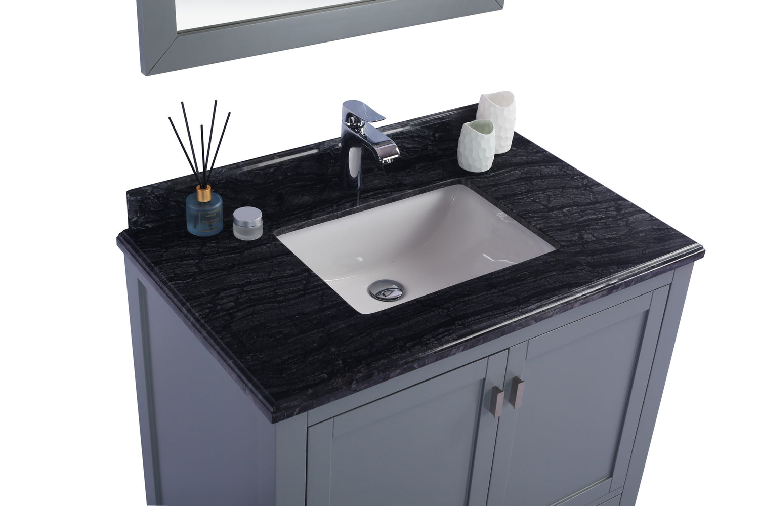 Wilson 36" Grey Bathroom Vanity with Black Wood Marble Countertop Laviva 313ANG-36G-BW