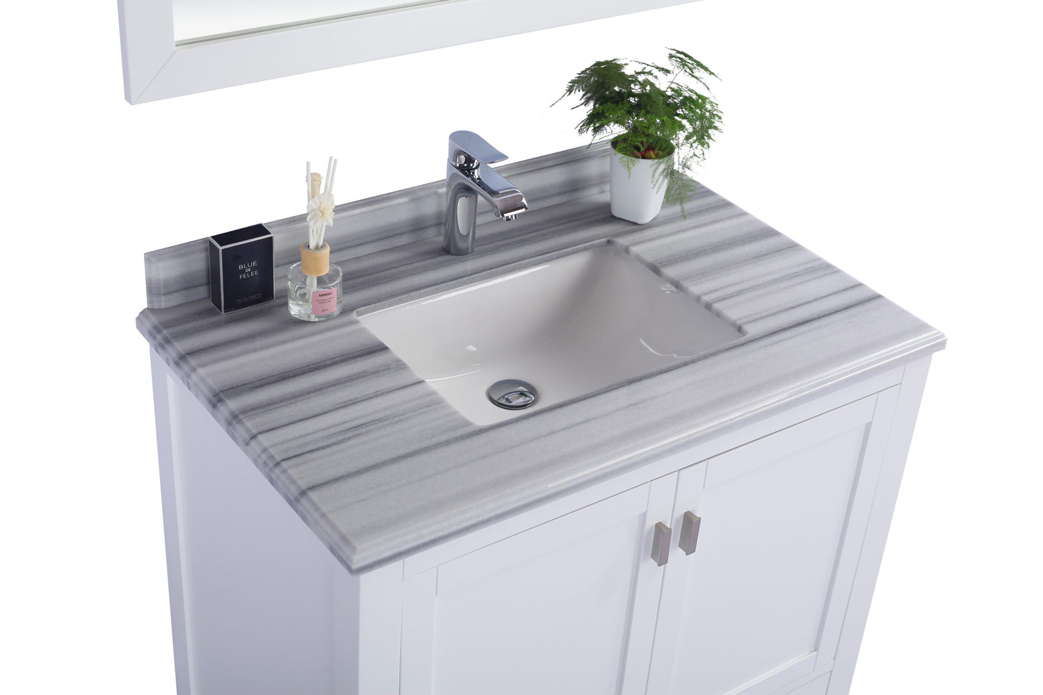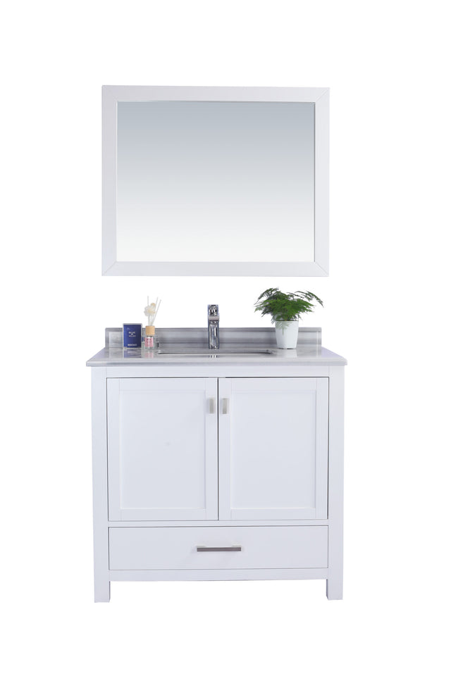 Wilson 36" White Bathroom Vanity with White Stripes Marble Countertop Laviva 313ANG-36W-WS