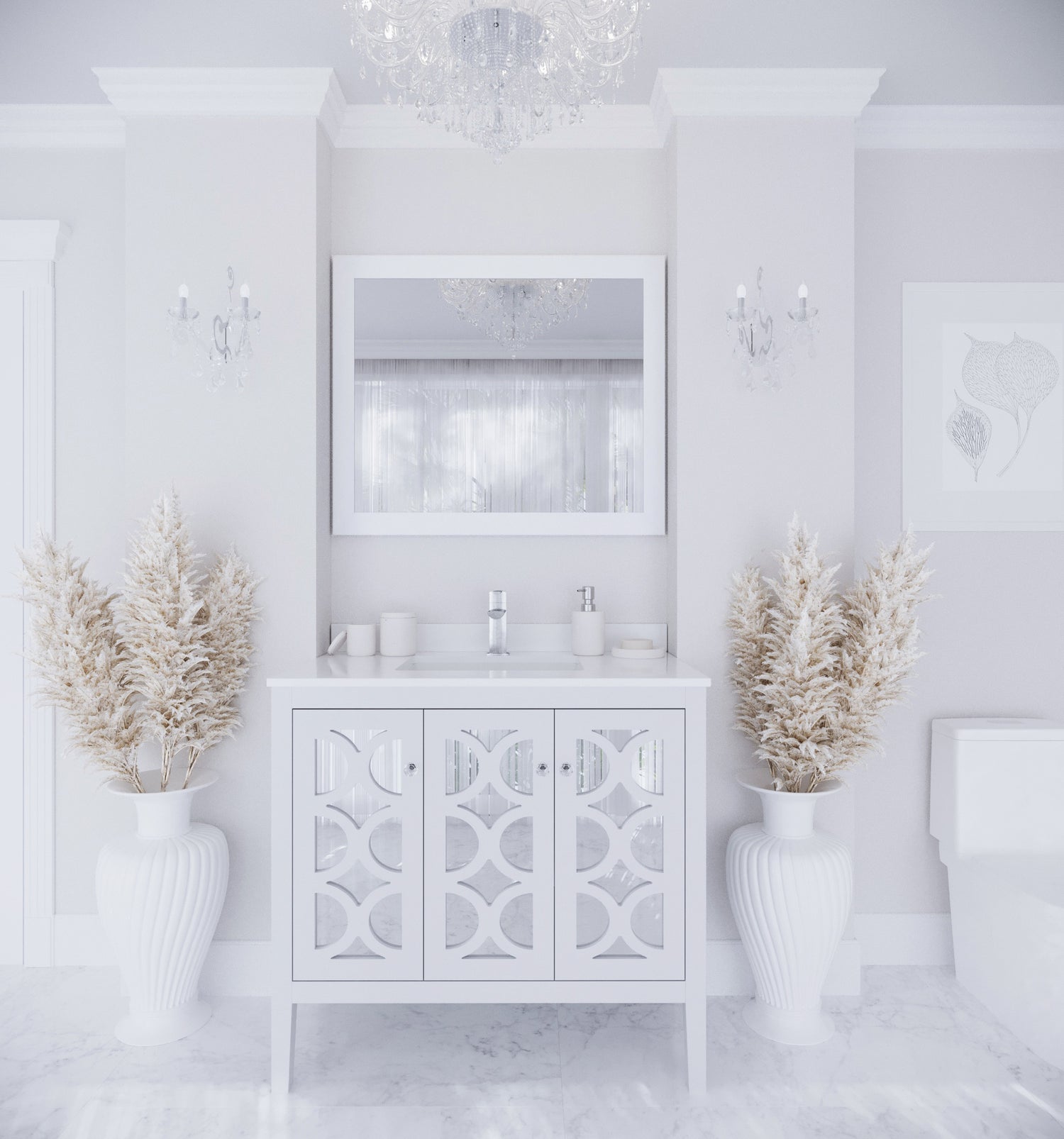 Presenting the Mediterraneo Collection, if you’re going for the “Putting on the Ritz” look, with a nod to classical vintage, this look brings its classic relevance to today’s bathrooms. The Mediterraneo vanity features a real wood cabinet with doors that showcases classical cut-outs, layered onto a mirrored glass background. As you reach for the crystal glass knobs on the cabinet's soft-closing doors, they open to an open bottom platform which contains a surprise hidden drawer with soft closing rails. Style and functionality have indeed married and produced this fantasy beauty, come to reality in two finishes: Grey and Classic White.