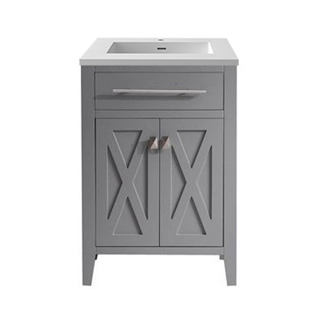 Wimbledon 24" Grey Bathroom Vanity with Matte White VIVA Stone Solid Surface Countertop Laviva 313YG319-24G-MW