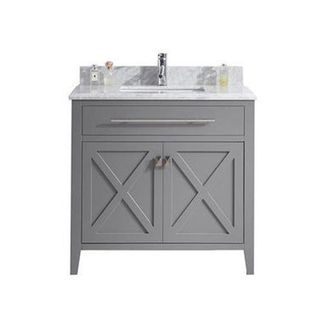 Wimbledon 36" Grey Bathroom Vanity with White Carrara Marble Countertop Laviva 313YG319-36G-WC