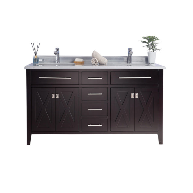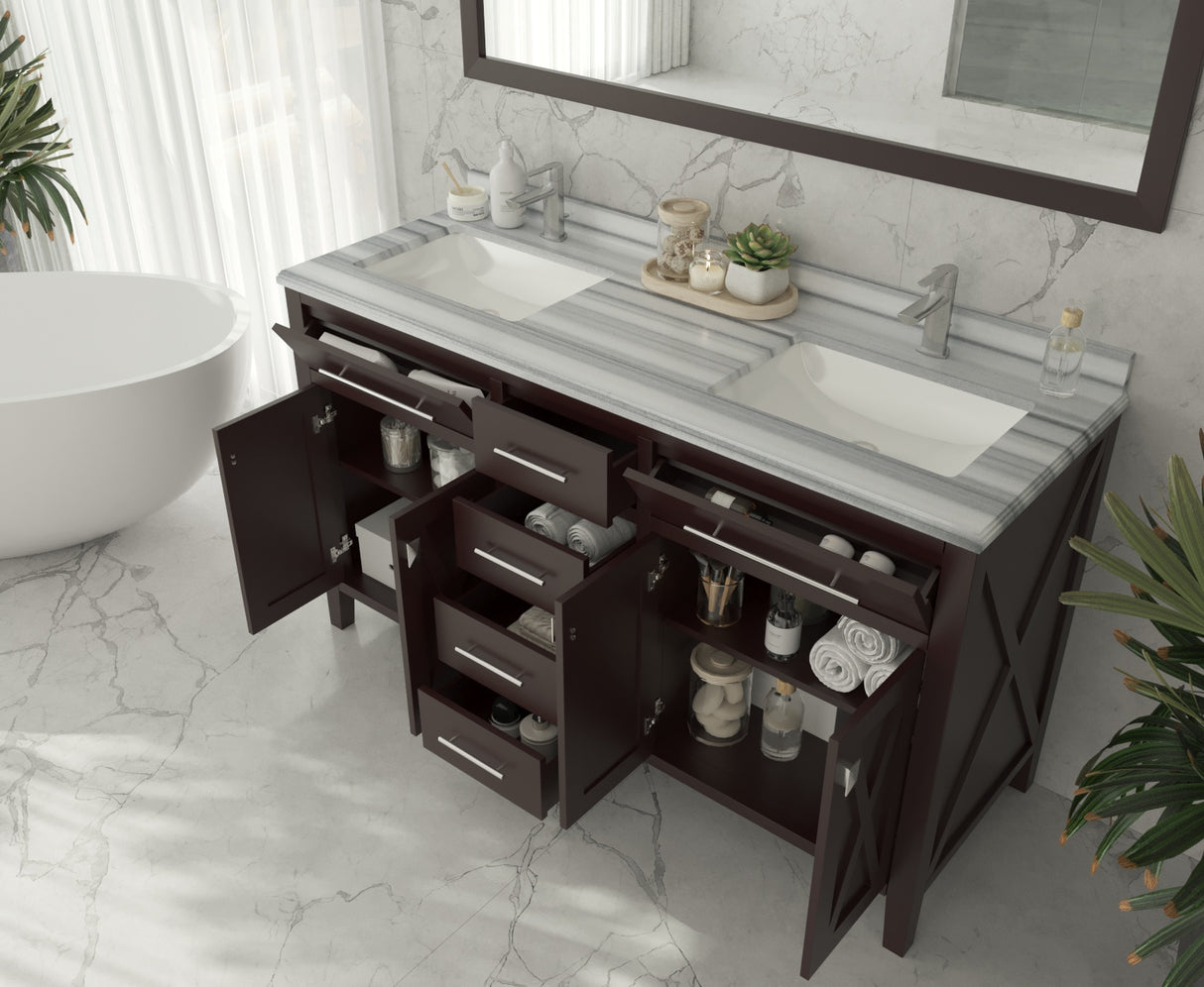Wimbledon 60" Brown Double Sink Bathroom Vanity with White Stripes Marble Countertop Laviva 313YG319-60B-WS
