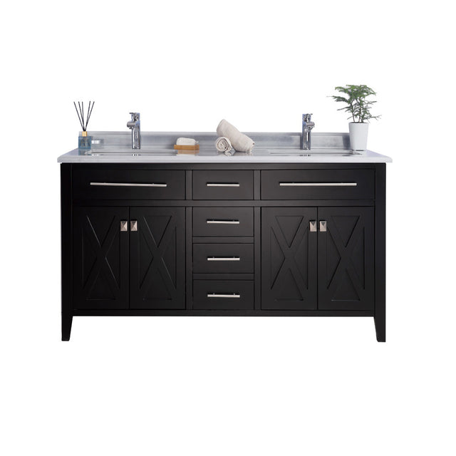 Wimbledon 60" Espresso Double Sink Bathroom Vanity with White Stripes Marble Countertop Laviva 313YG319-60E-WS