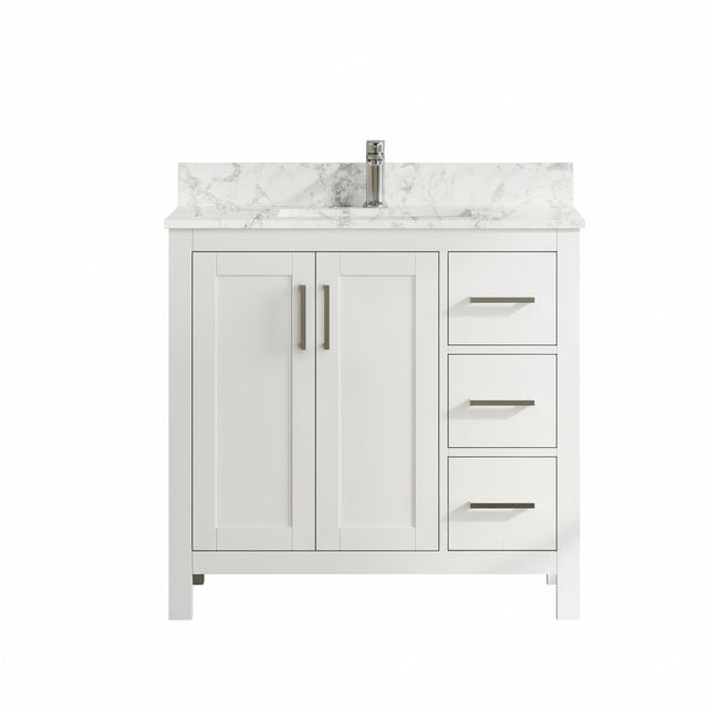 New England Home Goods Cannon 36" Single Sink Vanity in White - Engineered Wood; Stone Top