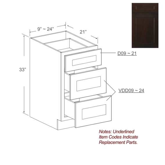 VANITY DRAWER BASE - 3 DRAWERS - 15" WIDE X 21" DEEP X 33" HIGH