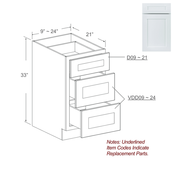 VANITY DRAWER BASE - 3 DRAWERS - 15" WIDE X 21" DEEP X 33" HIGH