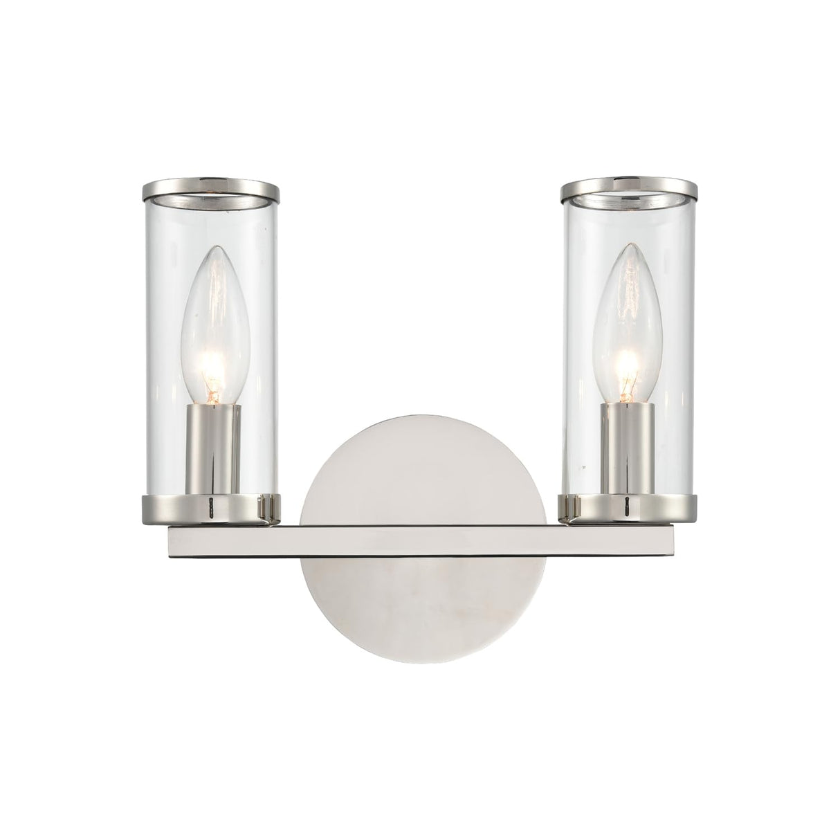 Alora WV309022PNCG REVOLVE WALL VANITY 2 LIGHT POLISHED NICKEL CLEAR GLASS