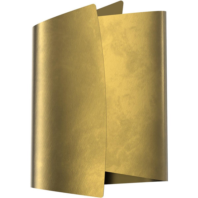 The Parducci Wall Sconce from Alora Lighting is a stately blend of brass and steel inspired by parchment scrolls and origami art, it suspends two damp-listed lamps inside the curling metal sheet that forms its single-piece shade, blocking direct glare. The rounded seam extends reflected light from its interior in a warm, luxurious fashion, enlivening its surroundings with a stylish, appealing ambiance.