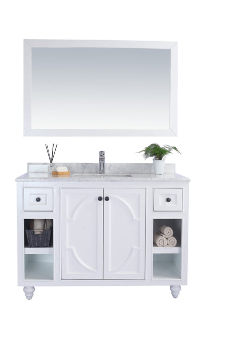 Regular price $1,87425UnavailableIn stock online (20 Units)Odyssey 48" White Bathroom Vanity with White Carrara Marble Countertop L...