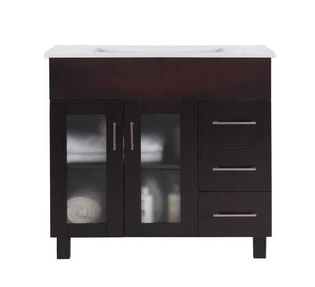 Regular price $1,19625UnavailableIn stock online (20 Units)Nova 36" Espresso Bathroom Vanity with White Ceramic Basin Countertop La...