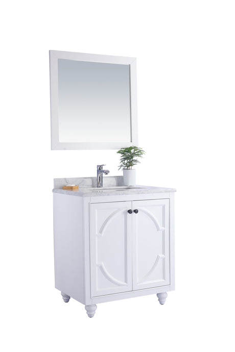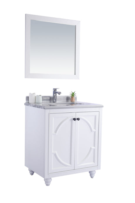 Odyssey 30" White Bathroom Vanity with White Stripes Marble Countertop L...