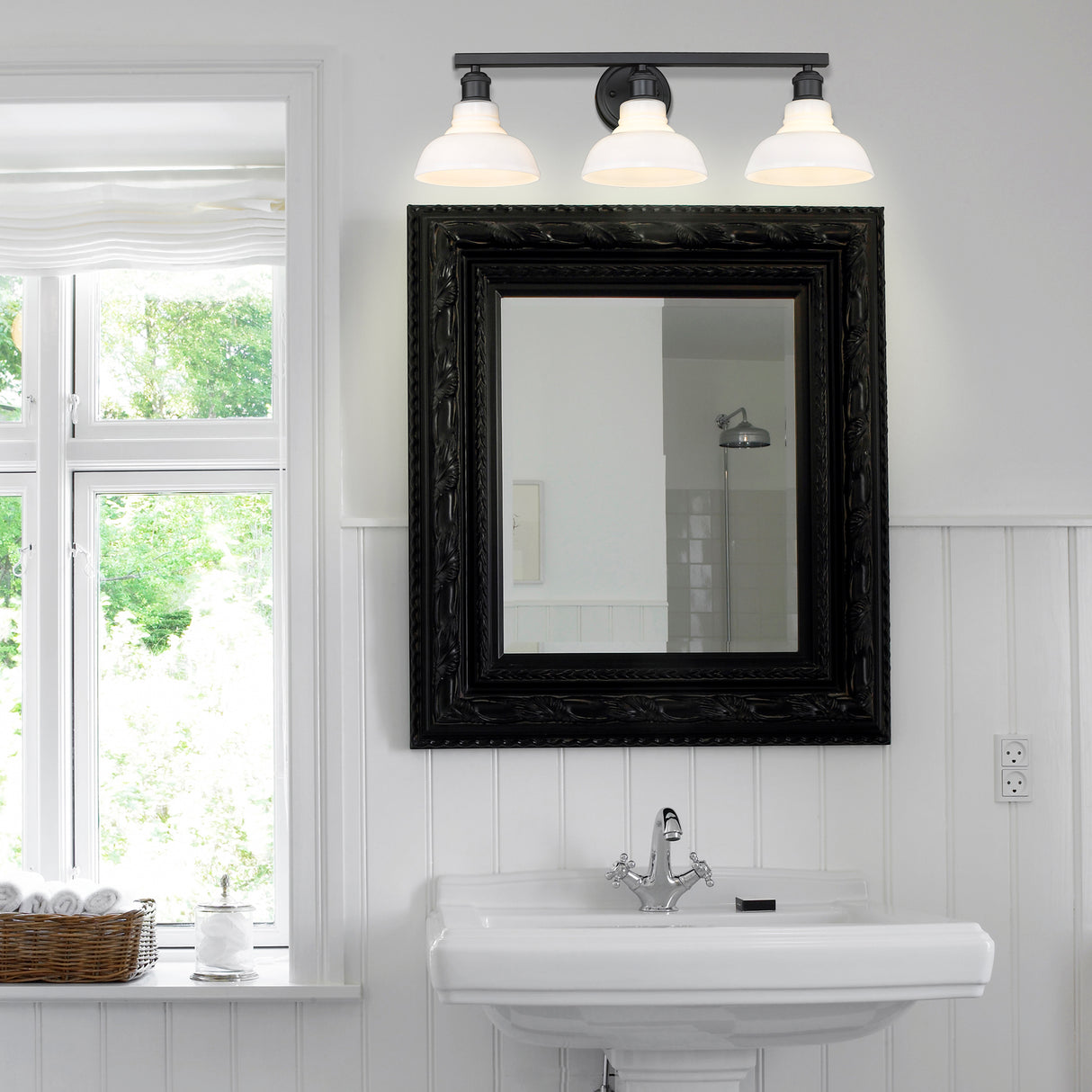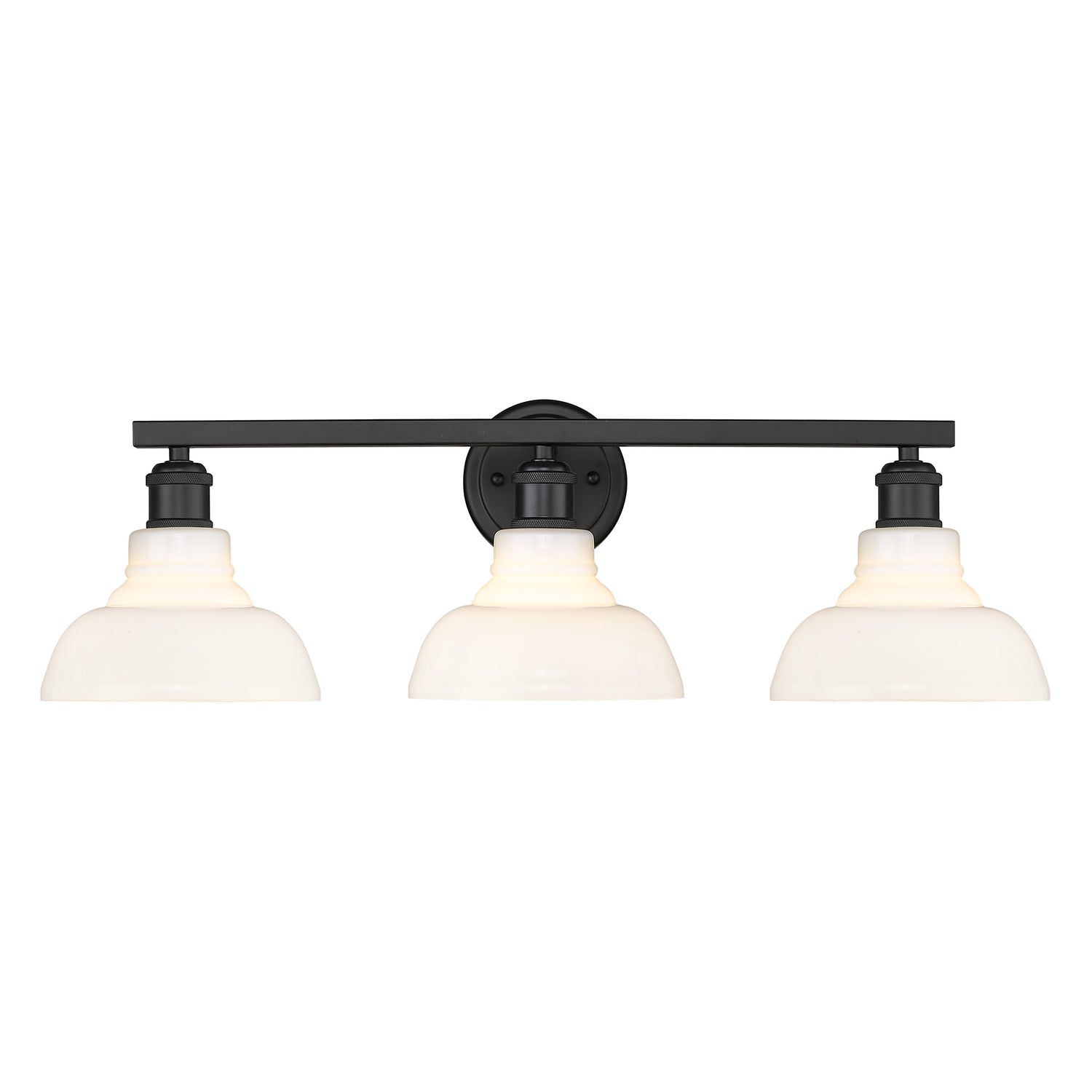 Carver 3 Light Bath Vanity in Matte Black with Vintage Milk Glass