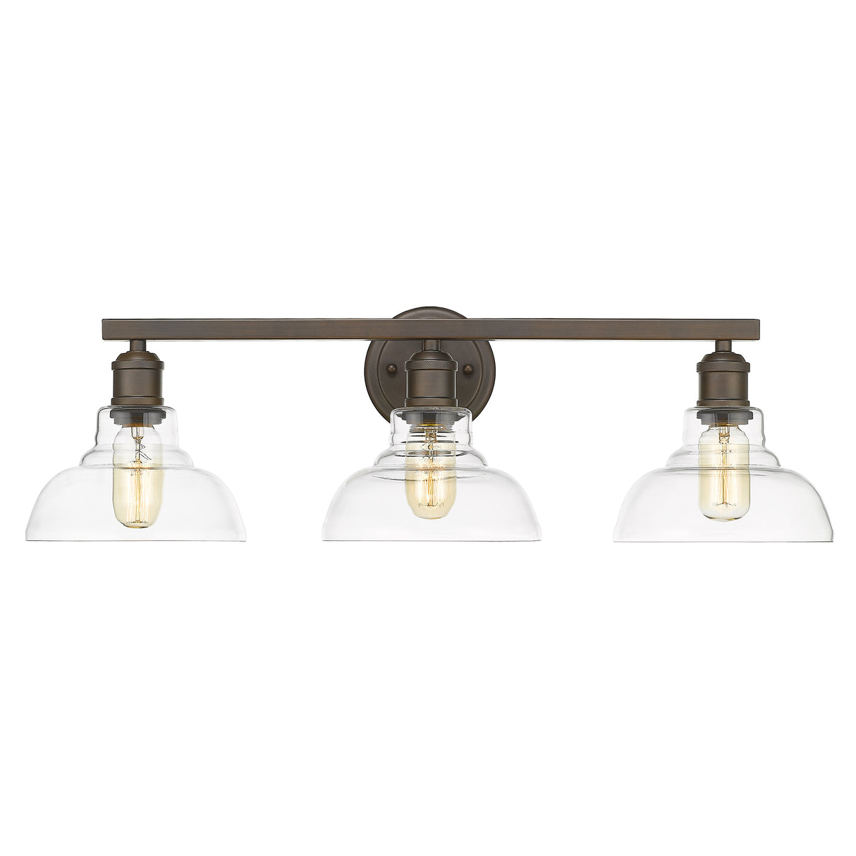 Carver 3 Light Bath Vanity in Rubbed Bronze with Clear Glass Shade