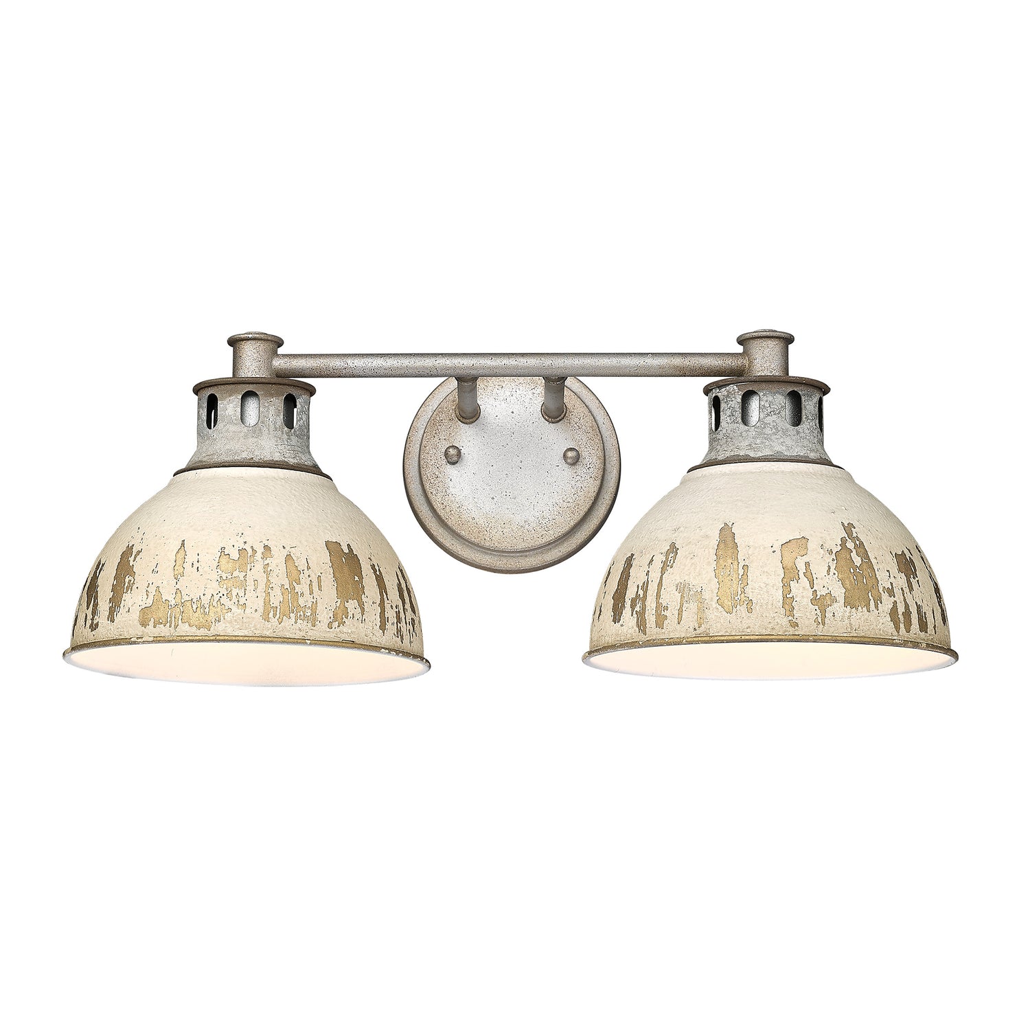 Kinsley 2 Light Bath Vanity in Aged Galvanized Steel with Antique Ivory Shade
