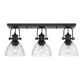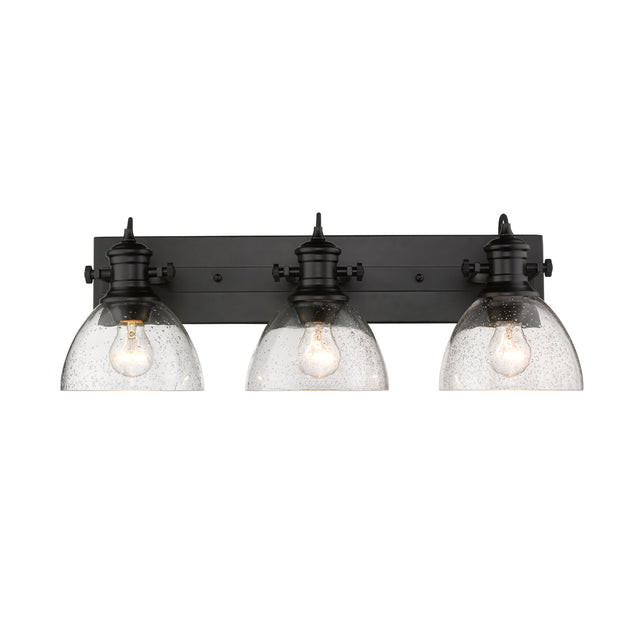 Hines 3-Light Bath Vanity in Matte Black with Seeded Glass