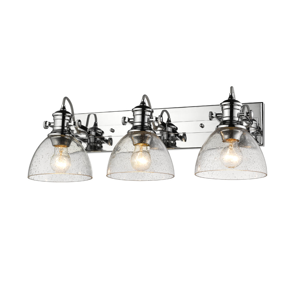 Hines 3-Light Bath Vanity in Chrome with Seeded Glass