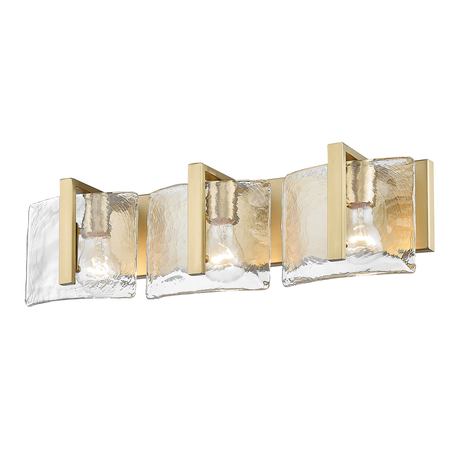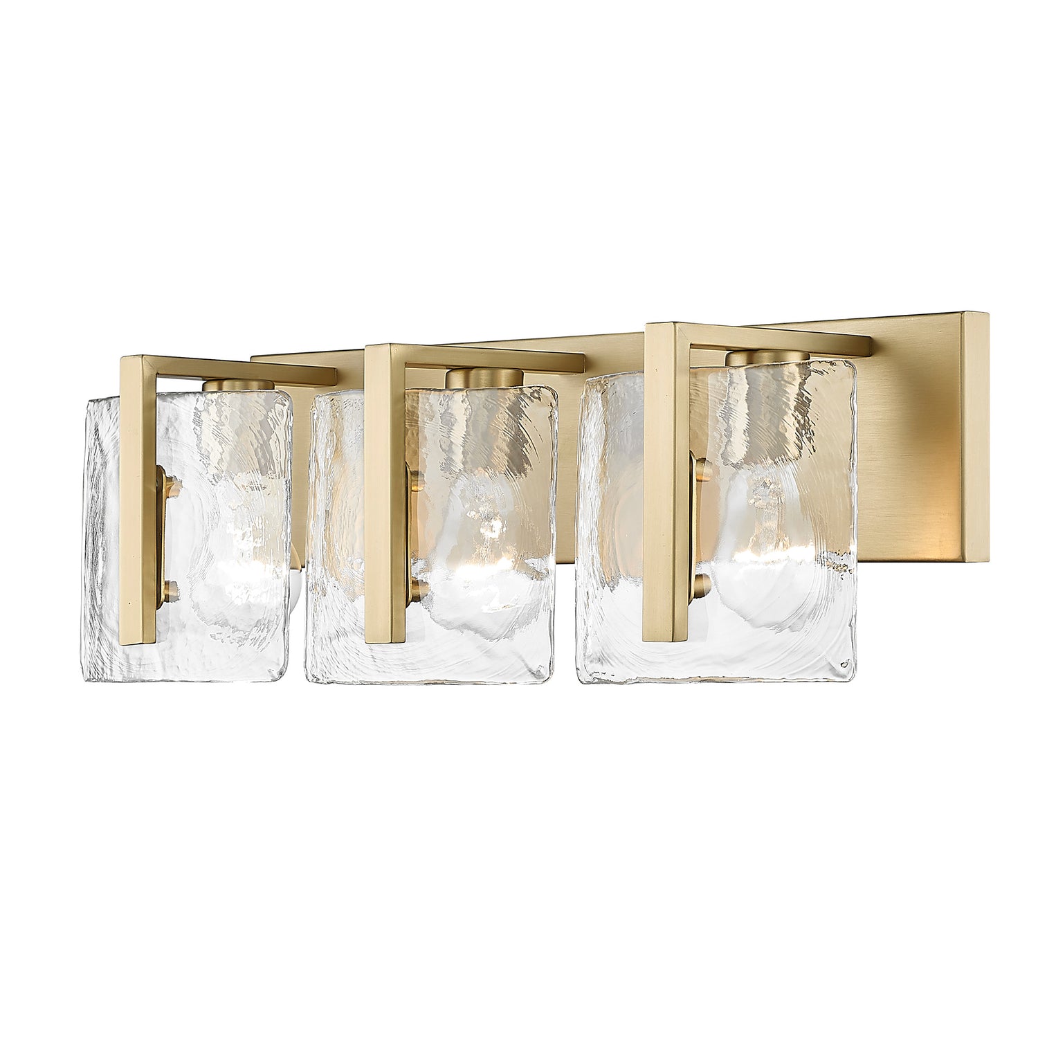 Aenon 3-Light Bath Vanity in Brushed Champagne Bronze with Hammered Water Glass Shade