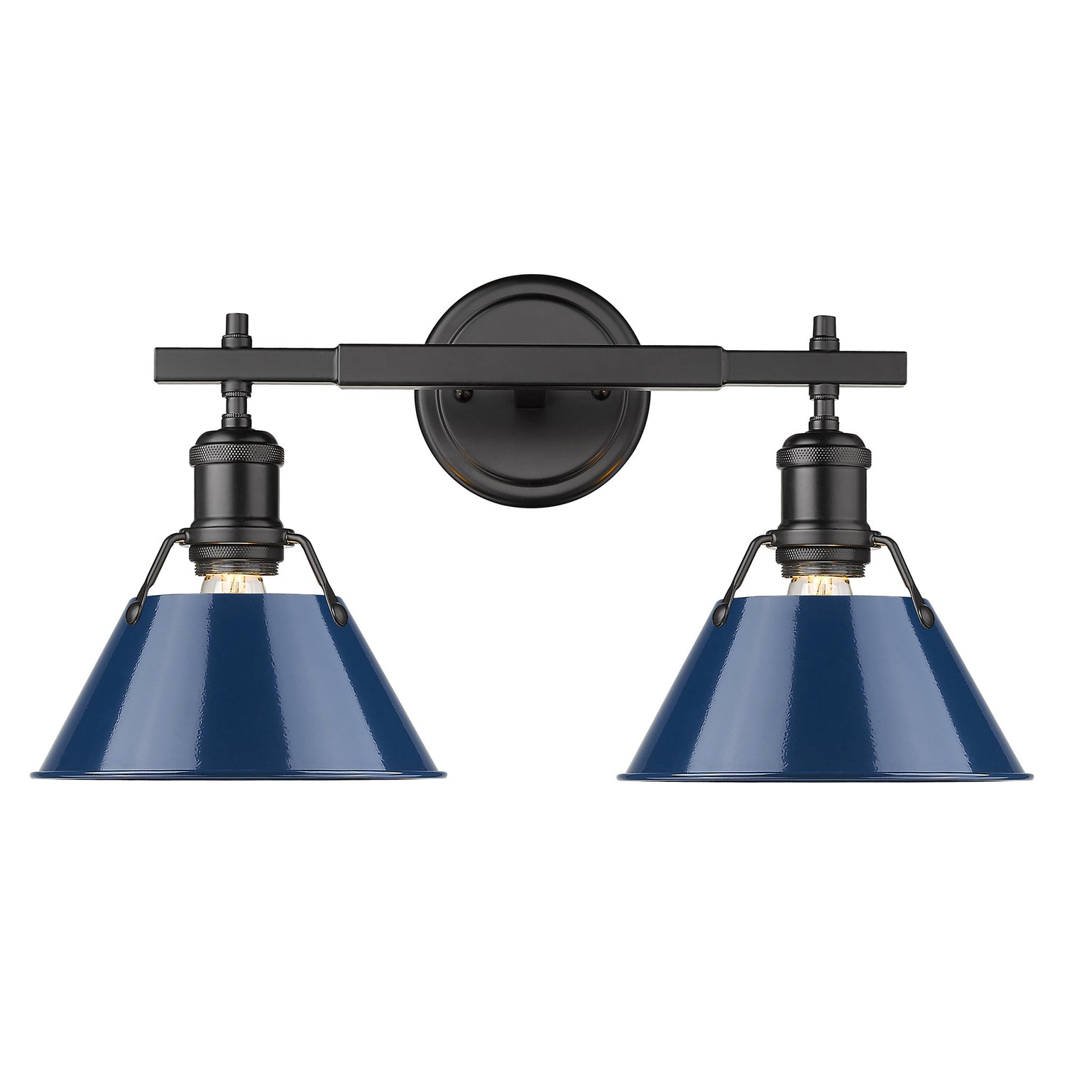 Orwell BLK 2 Light Bath Vanity in Matte Black with Navy Blue Shade