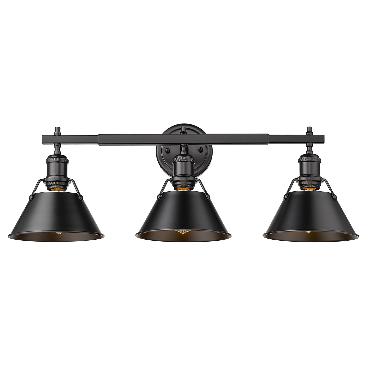 Orwell BLK 3 Light Bath Vanity in Matte Black with Matte Black Shades