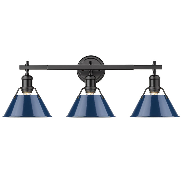 Orwell BLK 3 Light Bath Vanity in Matte Black with Navy Blue Shade