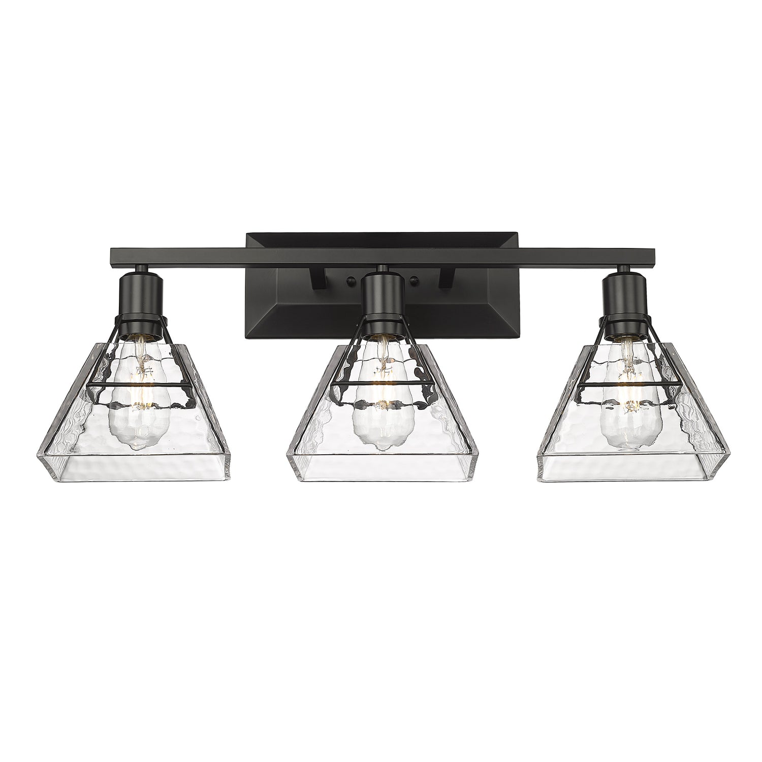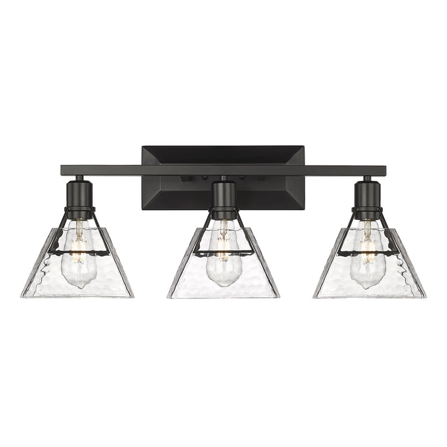 Kepler 3 Light Bath Vanity in Matte Black with Water Glass Shade