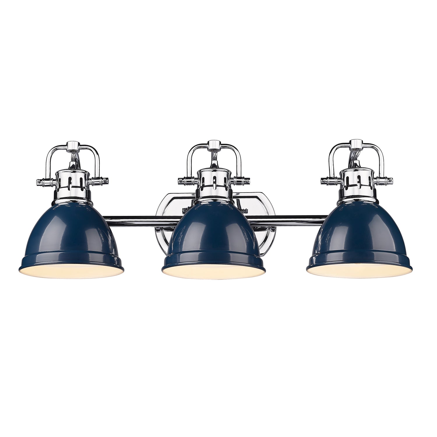 Duncan CH 3 Light Bath Vanity in Chrome with Navy Blue Shade