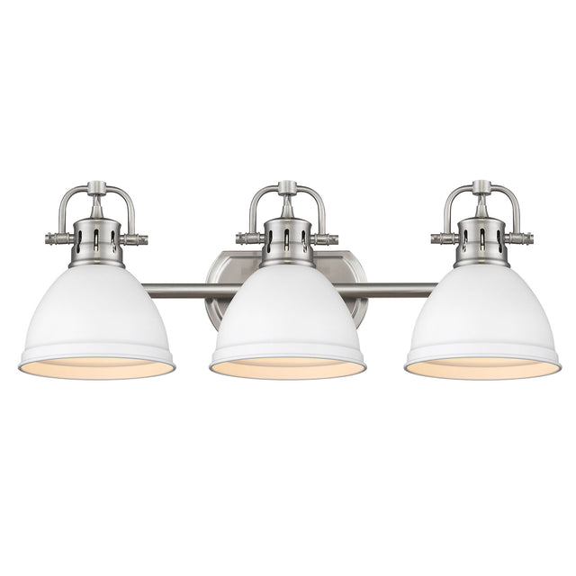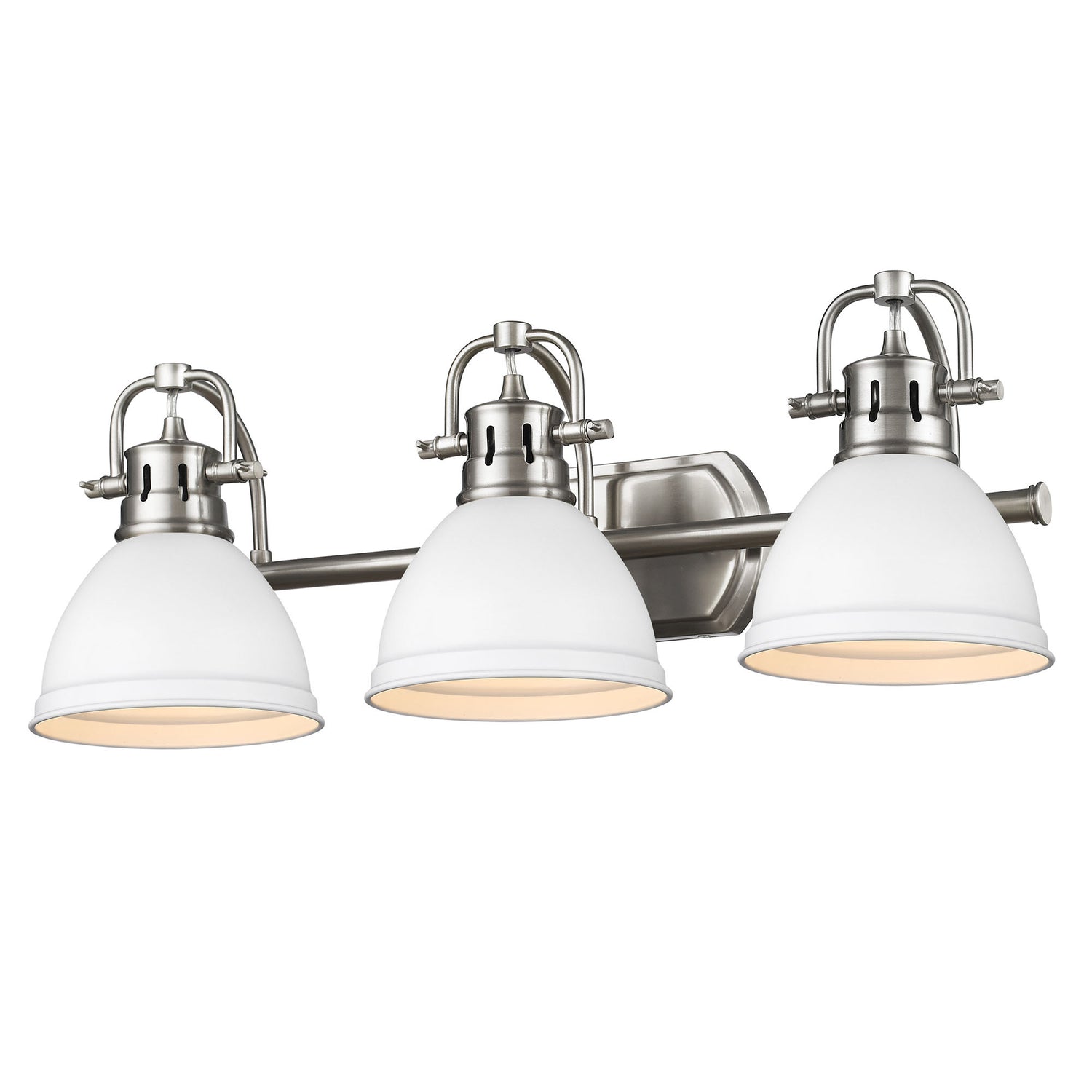 Duncan 3 Light Bath Vanity in Pewter with a Matte White Shade