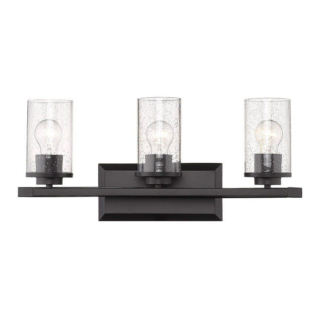 Mercer 3 Light Bath Vanity in Matte Black with Matte Black accents and Seeded Glass