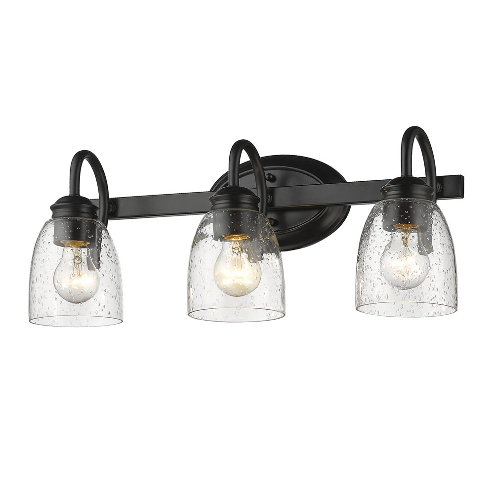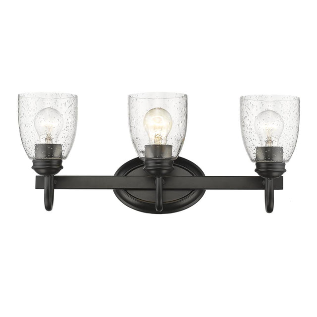 Parrish 3 Light Bath Vanity in Matte Black with Seeded Glass