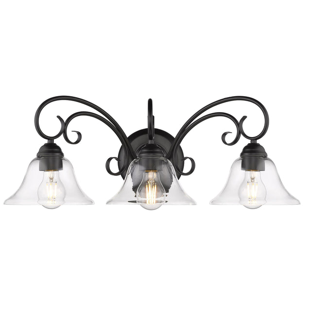 Homestead 3 Light Bath Vanity in Matte Black with Clear Glass