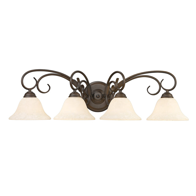 Homestead 4 Light Bath Vanity in Rubbed Bronze with Tea Stone Glass