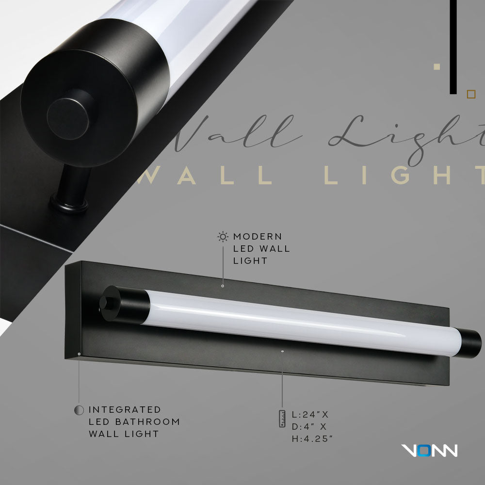 VONN Procyon VMW11800BL 24" Integrated LED ADA Compliant ETL Certified Bathroom Wall Lighting Fixture, Black