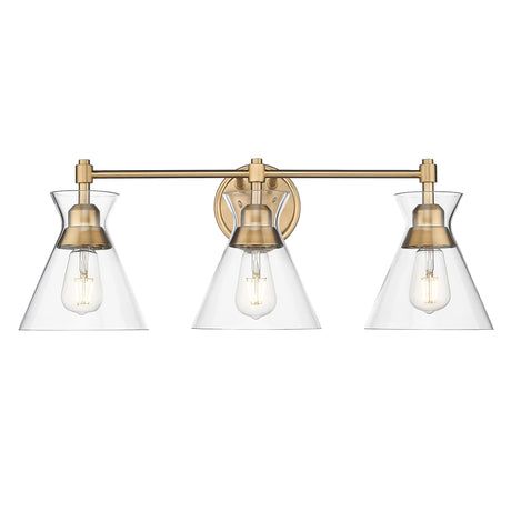 Regular price $11999UnavailableIn stock online (34 Units)Malta BCB 3 Light Bath Vanity in Brushed Champagne Bronze with Clear Glass Shade