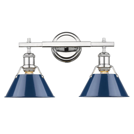 Regular price $21999UnavailableIn stock online (5 Units)Orwell CH 2 Light Bath Vanity in Chrome with Navy Blue Shade