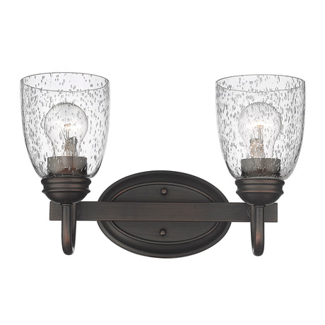 Regular price $18900UnavailableIn stock online (34 Units)Parrish RBZ 2 Light Bath Vanity in Rubbed Bronze with Seeded Glass Shade