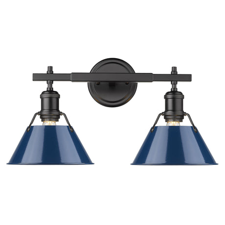 Regular price $21999UnavailableIn stock online (110 Units)Orwell BLK 2 Light Bath Vanity in Matte Black with Navy Blue Shade