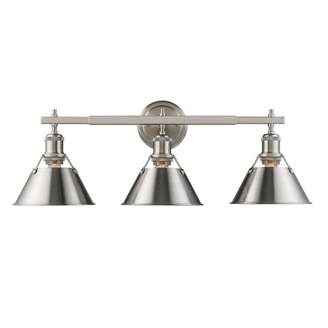 Regular price $35999UnavailableIn stock online (4 Units)Orwell PW 3 Light Bath Vanity in Pewter with Rubbed Bronze Shade