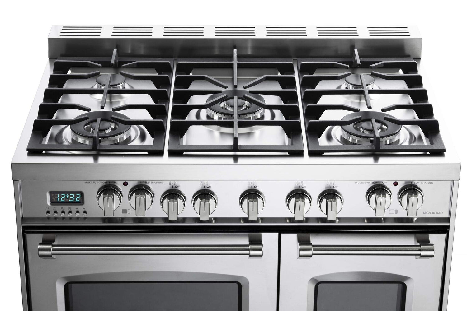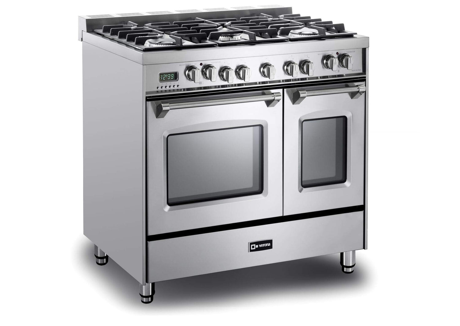 Made in Italy- The stylish Verona line of ranges, ovens and cooktops are a preferred brand of appliances featured in upscale kitchens throughout Europe since 1958. Each Verona piece is exquisitely designed and manufactured in the suburbs of Venice, Italy and stand as a benchmark for durable and beautiful Italian professional appliances. Verona products are held to stringent standards of quality unsurpassed in the industry. Verona Prestige 36" Dual Fuel Range Double Oven 36" Double Oven Dual Fuel Range (Gas Burners Electric Oven) 304 Stainless steel Stainless steel rounded oven handles Cast-iron grates Beveled oven doors Electronic ignition Flame failure safety device 5 Sealed gas burners 2- European convection ovens with element EZ clean porcelain oven surface 4 Heavy Duty Racks Multi Function electronic programmable oven Digital clock and timer Full width storage compartment Adjustable Stainless steel legs Includes L.P Kit, Type- Dual Fuel (Gas Burners Electric Oven) Clock and Time- Yes Cast Iron Wok Ring-Yes Control Knobs-Chrome Bezel Stainless Steel Storage Compartment-Drawer Liquid Propane (LP) Kit Included Power Requirements 120/240 Volt 60Hz. 40 Amp Cook Top Features Burners- 5 Sealed Left Front -12,000 BTU Right Front- 12,000 BTU Center 1,000 - 17,000 BTU Left Rear 8,000 BTU Right Rear 8,000 BTU Flame Failure Safety Device-Yes Main Oven Features Multi Function Yes Oven Capacity (Cu Ft.) 2.4 Convection Fan- European Closed Door Broil Yes Broiler- Yes Broiler Power-2,000 W Oven Power -2,400 W Convection Element - 2,450 W Racks- 2 Broiler Pan Yes Second Oven Features Multi Function Yes Second Oven Cap. (Cu Ft.) 1.5 Convection Fan European Closed Door Broil Yes Broiler Yes Broiler Power 1,450 W Oven Power 1,500 W Convection Heater 2,450 W Racks 2 Broiler Pan & Grill Pan Yes Dimensions Width (in) 35 ? Height (in) w/o Backguard 35 ? - 37 ? Height (in) of Backguard 2 or 8 Depth (in) 24 Depth (in) with Backguard 25 ? - Plug Not Included - Residential Use Only, Made in Italy 304 Stainless Steel, Gorgeous, Unique Dual Fuel Range Oven (Gas Burners Electric Oven) - 52,000 BTU Output, Continouus Grates, Electronic ignition,This range is durable and has high corrosion resistance. | 5 Sealed Gas Burners 2 Turbo-Electric Convection Fan,EZ Clean Porcelain Oven Surface, Manual Clean, Digital Clock/Timer,Stainless Steel Rounded Oven Handles, Chrome Knobs | Main Oven Capacity 2.4 (Cu. Ft.) Oven Width: 18" Oven Depth: 17" Oven Height: 14 Second Oven Capacity 1.5 (Cu. Ft.) Oven Width: 11" Oven Depth: 17" Oven Height" 14" | LP Kit Included- Beveled Doors,Cast-Iron Grates and Caps Electronic Ignition Flame Failure Safety Device- Width: 35 7/8" Height without Backguard: 35 3/8" - 37 1/4" Depth: 24" | Voltage: 120/240 Volts, 60 Hz Amps: 40 Amps - 2 year Manufacturer Warranty