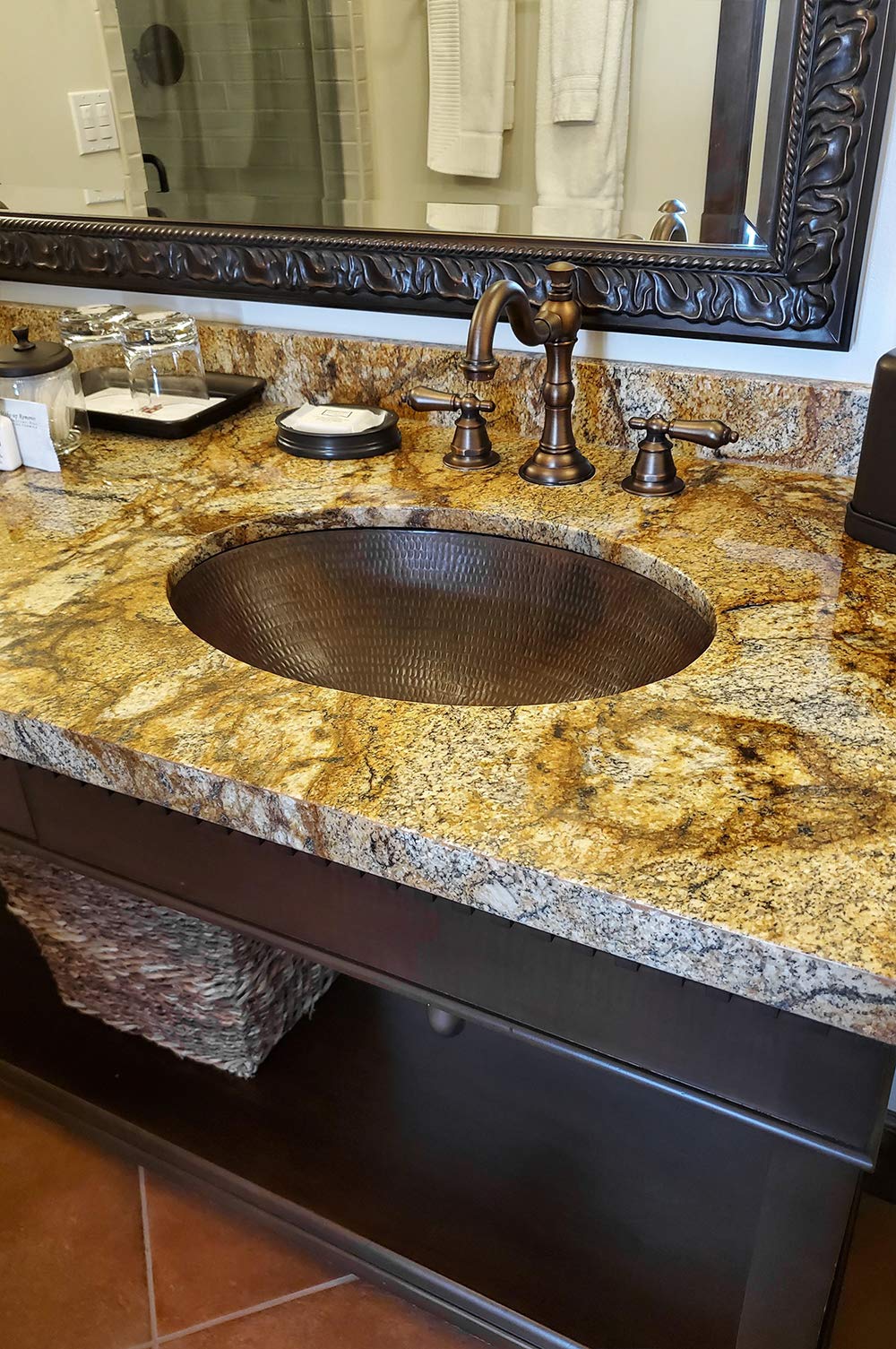 Uncompromising quality, beauty and functionality make up this Premier Oval Under Counter Hammered Copper Bathroom Sink. Green recyclable products like copper sinks are a must have in today's modern home. This product is sure to impress your guests and satisfaction is always guaranteed. Oval Hammered Copper Surface. Dimensions: inner 17-Inch by 12-Inch by 6-Inch, outer 19-Inch by 14-Inch by 6-Inch. Installation Type: under counter or surface-mount. Rim: 1-Inch Flat rim. The countertop depth measures 17-Inch front to back. Material gauge: Industry Best (17-guage or .0450-Inch). Drain size is 1.5-Inch, non-overflow. Suggested Drain Models: D-207ORB, D-208ORB (Drain sold separately). The faucet mounting position is counter deck mount. It is handmade, 100-Percent recyclable and made of 99.7-Percent pure recycled copper. It is Lead Free (less than 00.01-Percent). Suggested accessories: Installation Silicone for Model: C900-ORB, Copper Sink Wax- Model: W900-WAX Hammered Copper Waste Bin for Model: TC11DB.From the ManufacturerUncompromising quality, beauty and functionality make up this Premier Oval Under Counter Hammered Copper Bathroom Sink. Green recyclable products like copper sinks are a must have in today's modern home. This product is sure to impress your guests and satisfaction is always guaranteed. Oval Hammered Copper Surface. Dimensions: inner 17-Inch by 12-Inch by 6-Inch, outer 19-Inch by 14-Inch by 6-Inch. Installation Type: under counter or surface-mount. Rim: 1-Inch Flat rim. The countertop depth measures 17-Inch front to back. Material gauge: Industry Best (17-guage or .0450-Inch). Drain size is 1.5-Inch, non-overflow. Suggested Drain Models: D-207ORB, D-208ORB (Drain sold separately). The faucet mounting position is counter deck mount. It is handmade, 100-Percent recyclable and made of 99.7-Percent pure recycled copper. It is Lead Free (less than 00.01-Percent). Suggested accessories: Installation Silicone for Model: C900-ORB, Copper Sink Wax- Model: W900-WAX Hammered Copper Waste Bin for Model: TC11DB.