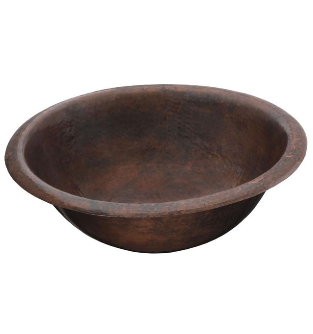 The allure of the Tacambaro Aged Copper is in its deep weathered aged copper finish that accentuates the soothing circular shape of this handcrafted copper sink.