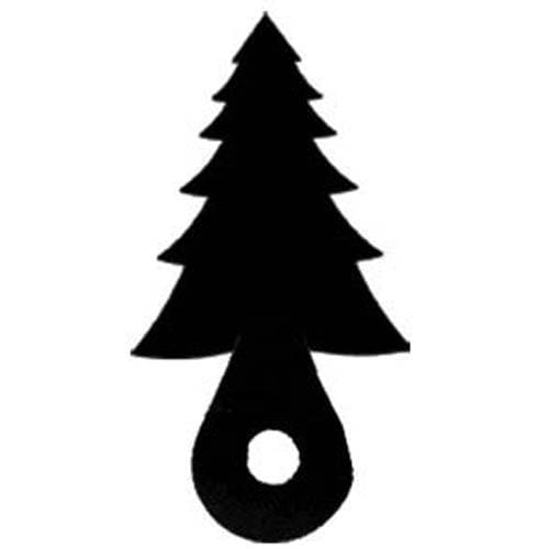 Wrought Iron Pine Tree Cabinet Door Silhouettes :: These Wrought Iron Cabinet Door Silhouettes are mounted underneath your current door handle like a washer. Once you mount the handle over the silhouette and screw mount it into place you are left with a decorative touch to your cabinets. These Silhouettes can be mounted facing either left or right. PRODUCT SPECIFICATIONS Item Height: 2.25 In. Item Width: 0.05 In. Item Length: 0.88 In. Product Weight: 1 oz Color: flat black Packaging: Product is sold Individually (you are purchasing one item) Material: wrought iron containing alloys of .01% to .29% carbon and iron Finish: Hand crafted wrought iron for indoor or outdoor use. (heavy duty metal) in a flat powder coating finish :: lead free, long lasting & rust resistant Country: MADE in the USA :: Supporting United States craftsman.