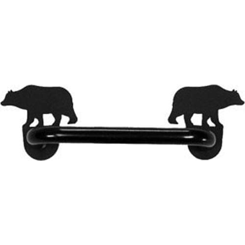 Wrought Iron Bear Cabinet Horizontal Door Handle :: Even Mother Nature needs a smile every now and then, and the bear is more then happy to oblige. The bear lives by his own rules and seems to enjoy himself. He sleeps when he’s tired, eats when he’s hungry, and plays when he’s in the mood. Why not bring the character of the bear into your home. A simple extra touch to your bathroom or kitchen cabinets can make a big difference. You can also add your own style to bathrooms and kitchens with symbols that reflect your spirit. Be inspired by the playful symbol of forest with the Wrought Iron Bear Cabinet Horizontal Door Handle. This unique fixture features silhouettes of two bears walking on all four.. The wrought iron cabinet handle has an iron finish in powder black. This fun piece is hand crafted and made entirely in the USA. Mounting screws are included. This bear handle would look great in a bathroom, den, bedroom or kitchen. Look at matching bear outlet covers and light switch plates to create a theme. Look for other bear decor throughout the site. Simple details can add a fun touch to your rooms. Order the Wrought Iron Bear Cabinet Horizontal Door Handle today. PRODUCT SPECIFICATIONS Item Height: 2 In. Item Width: 1.25 In. Item Length: 4 In. Product Weight: 3 oz Color: flat black Packaging: Product is sold Individually (you are purchasing one item) Material: wrought iron containing alloys of .01% to .29% carbon and iron Finish: Hand crafted wrought iron for indoor or outdoor use. (heavy duty metal) in a flat powder coating finish :: lead free, long lasting & rust resistant Country: MADE in the USA :: Supporting United States craftsman.
