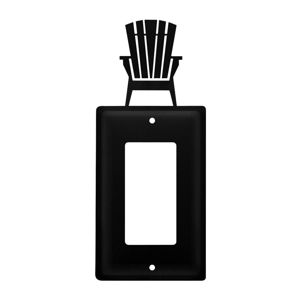 Wrought Iron Chair Single GFCI Cover :: Celebrate the outdoors with this functional black Adirondack chair single GFCI cover! Black wrought iron GFCI cover is hand crafted, featuring a single black Adirondack chair atop a standard size single GFCI plate frame. This GFI/GFCI cover is designed with a black powder iron finish. Decorative GFCI plate cover is a wonderful match for our collection of Adirondack chair decor, including Adirondack chair double GFCI covers (sold separately)! Also mix and match with our decorative wrought iron night lights. Rectangular GFCI cover measures 2 3/4 Inch W x 8 Inch H . Made in USA. PRODUCT SPECIFICATIONS Item Height: 8 In. Item Width: 0.17 In. Item Length: 2.75 In. Product Weight: 4 oz Color: flat black Packaging: Product is sold Individually (you are purchasing one item) Material: wrought iron containing alloys of .01% to .29% carbon and iron Finish: Hand crafted wrought iron for indoor or outdoor use. (heavy duty metal) in a flat powder coating finish :: lead free, long lasting & rust resistant Country: MADE in the USA :: Supporting United States craftsman.