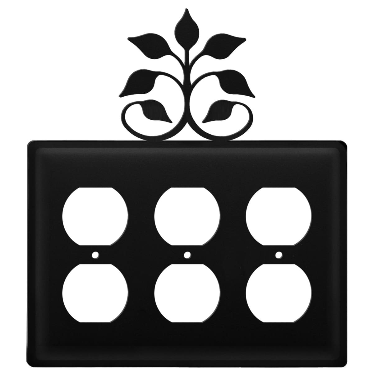 Wrought Iron Leaf Fan Triple Outlet Cover PRODUCT SPECIFICATIONS Item Height: 8 In. Item Width: 0.17 In. Item Length: 6.5 In. Product Weight: 8 oz Color: flat black Packaging: Product is sold Individually (you are purchasing one item) Material: wrought iron containing alloys of .01% to .29% carbon and iron Finish: Hand crafted wrought iron for indoor or outdoor use. (heavy duty metal) in a flat powder coating finish :: lead free, long lasting & rust resistant Country: MADE in the USA :: Supporting United States craftsman.