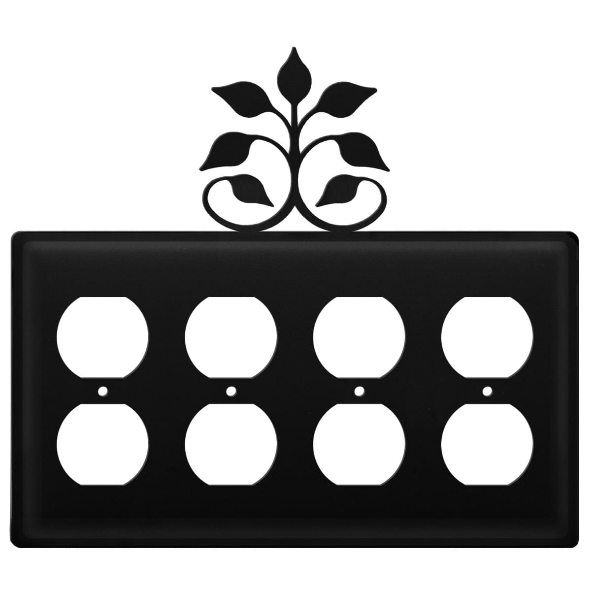 Wrought Iron Leaf Fan Quad Outlet Cover PRODUCT SPECIFICATIONS Item Height: 8 In. Item Width: 0.17 In. Item Length: 8.25 In. Product Weight: 10 oz Color: flat black Packaging: Product is sold Individually (you are purchasing one item) Material: wrought iron containing alloys of .01% to .29% carbon and iron Finish: Hand crafted wrought iron for indoor or outdoor use. (heavy duty metal) in a flat powder coating finish :: lead free, long lasting & rust resistant Country: MADE in the USA :: Supporting United States craftsman.