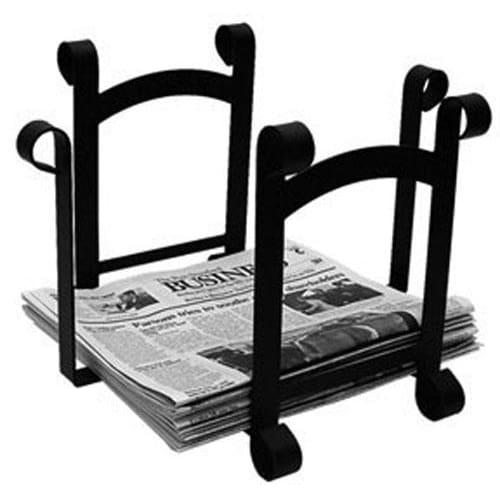 Wrought Iron Plain Magazine Storage-Newspaper Rack :: Keep things neat and organized with this attractive magazine and newspaper holder. The look is pure, classic wrought iron decor. This sturdy periodical stand can hold numerous magazines and newspapers. Know exactly where to find the day’s news, neatly stacked when you need it. If you prefer, use for bundling papers ready for recycling. Do not mess around with loose papers that slide and slip easily. Keep your home organized with an elegantly attractive piece of inexpensive wrought iron! An 11 inch height means a number of your favorite magazines or newspapers will fit inside this handy wrought iron holder. The flat black powder coating adds an attractive touch to the gently curled top and sides of each wrought iron slat. Wrought iron adds weight to the minimal design, ensuring your rack won’t topple or lean, spilling your carefully stacked periodicals everywhere. This appealing magazine holder makes a great gift for a loved one and can easily be decorated to fit any season. Give to a friend and encourage a recycling habit! This convenient black wrought iron newspaper rack is made in the United States! Rack measures 17.5”W x 11”H x 14.75”D. PRODUCT SPECIFICATIONS Item Height: 11 In. Item Width: 14.75 In. Item Length: 17.5 In. Product Weight: 76 oz Color: flat black Packaging: Product is sold Individually (you are purchasing one item) Material: wrought iron containing alloys of .01% to .29% carbon and iron Finish: Hand crafted wrought iron for indoor or outdoor use. (heavy duty metal) in a flat powder coating finish :: lead free, long lasting & rust resistant Country: MADE in the USA :: Supporting United States craftsman.