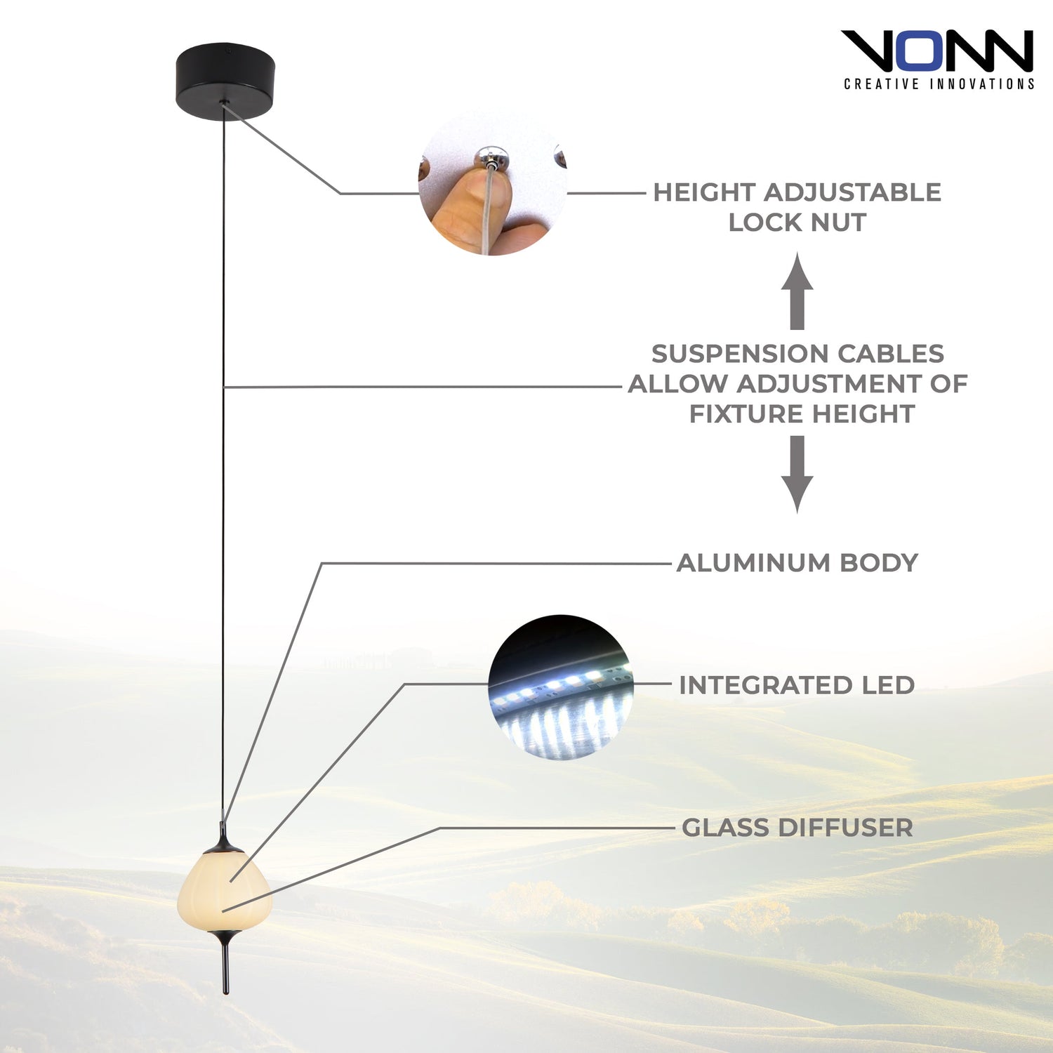 VONN Artisan Lecce VAP2221BL 5" Integrated LED ETL Certified Height Adjustable Pendant with Glass Shade