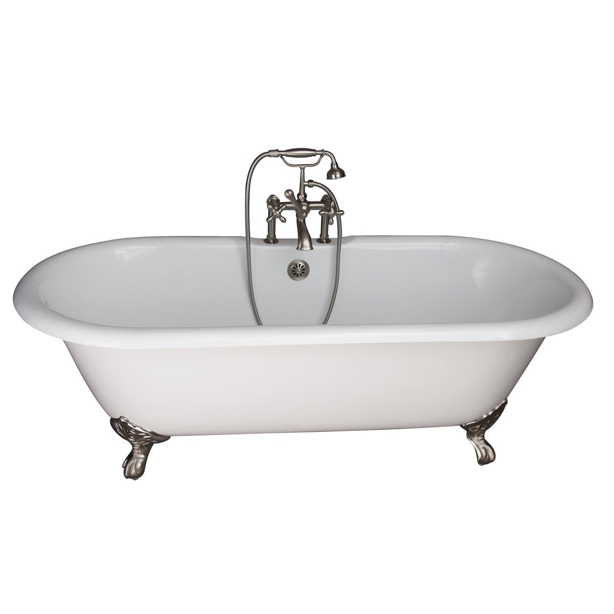 Columbus 61" Cast Iron Double Roll Top Tub Kit-Brushed Nickel Accessories