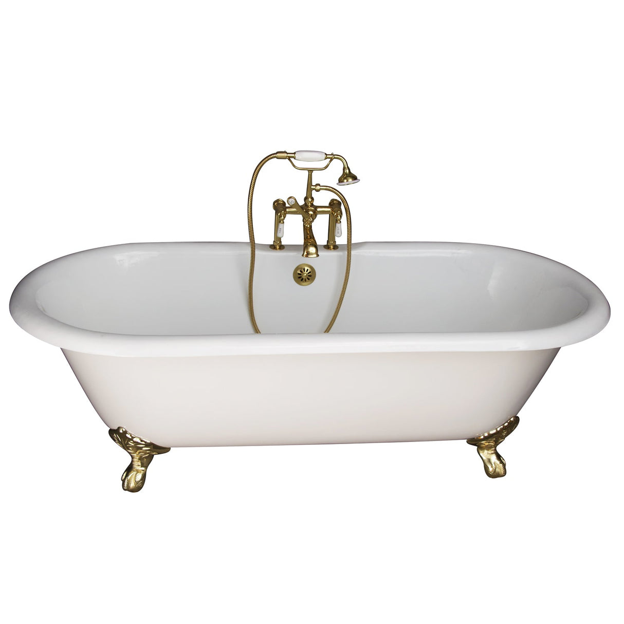 Columbus 61" Cast Iron Double Roll Top Tub Kit-Polished Brass Accessories